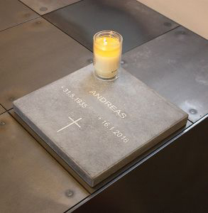 Die Grabplatten sind aus Natursandstein und es ist eine Auswahl