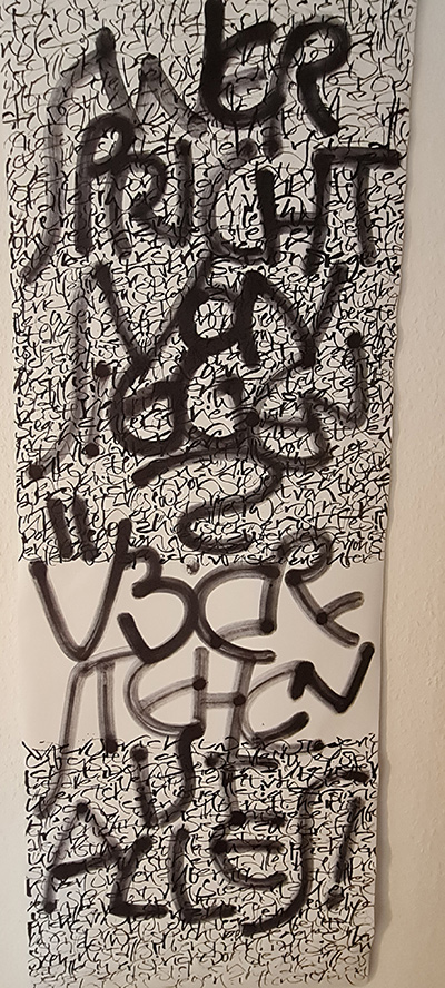 Darüber hinaus ist er auch künstlerisch tätig, seine Ausstellungen sind in ganz Deutschland und im benachbarten Ausland zu sehen. Seine Arbeiten sind „geschriebenen Interpretationen und Übertragungen“ von Worten und Aussprüchen, weitergedachte Wege der Schrift, insbesondere der Kalligraphie. „Wörter sollen langsam erkannt, dechiffriert und auch wieder buchstabiert werden - Schrift soll auch gedacht werden.“