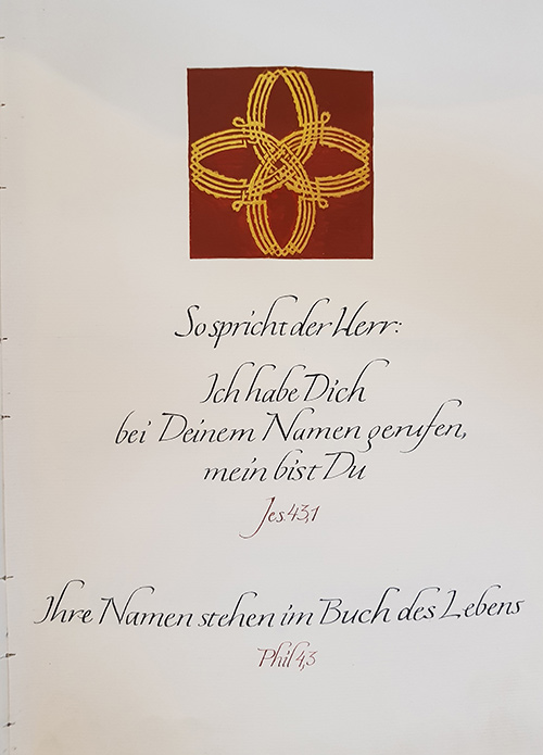 In unserem „Buch des Lebens“ werden alle Namen der Verstorbenen eingetragen, die in der Grabes- und Auferstehungskirche beigesetzt wurden.